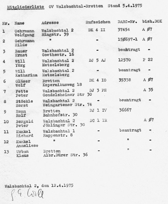 Eine wahrlich schwere Geburt. Aber schließlich war es soweit. Am 5. April 1975 wurde es offiziell, mit Brief und Siegel und .... Mitgliederliste: